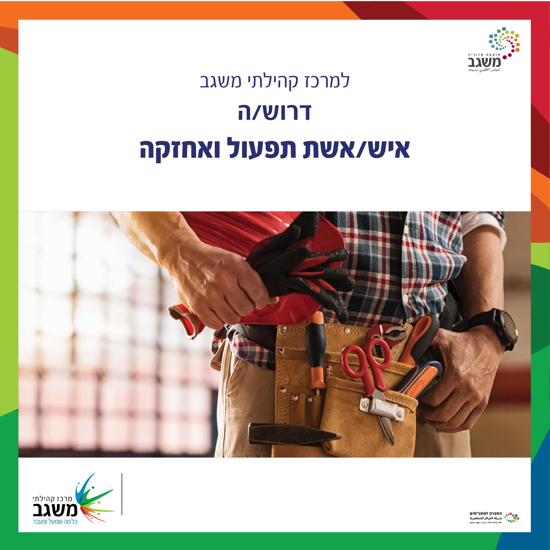 למרכז קהילתי משגב דרוש/ה: איש/אשת תפעול ואחזקה