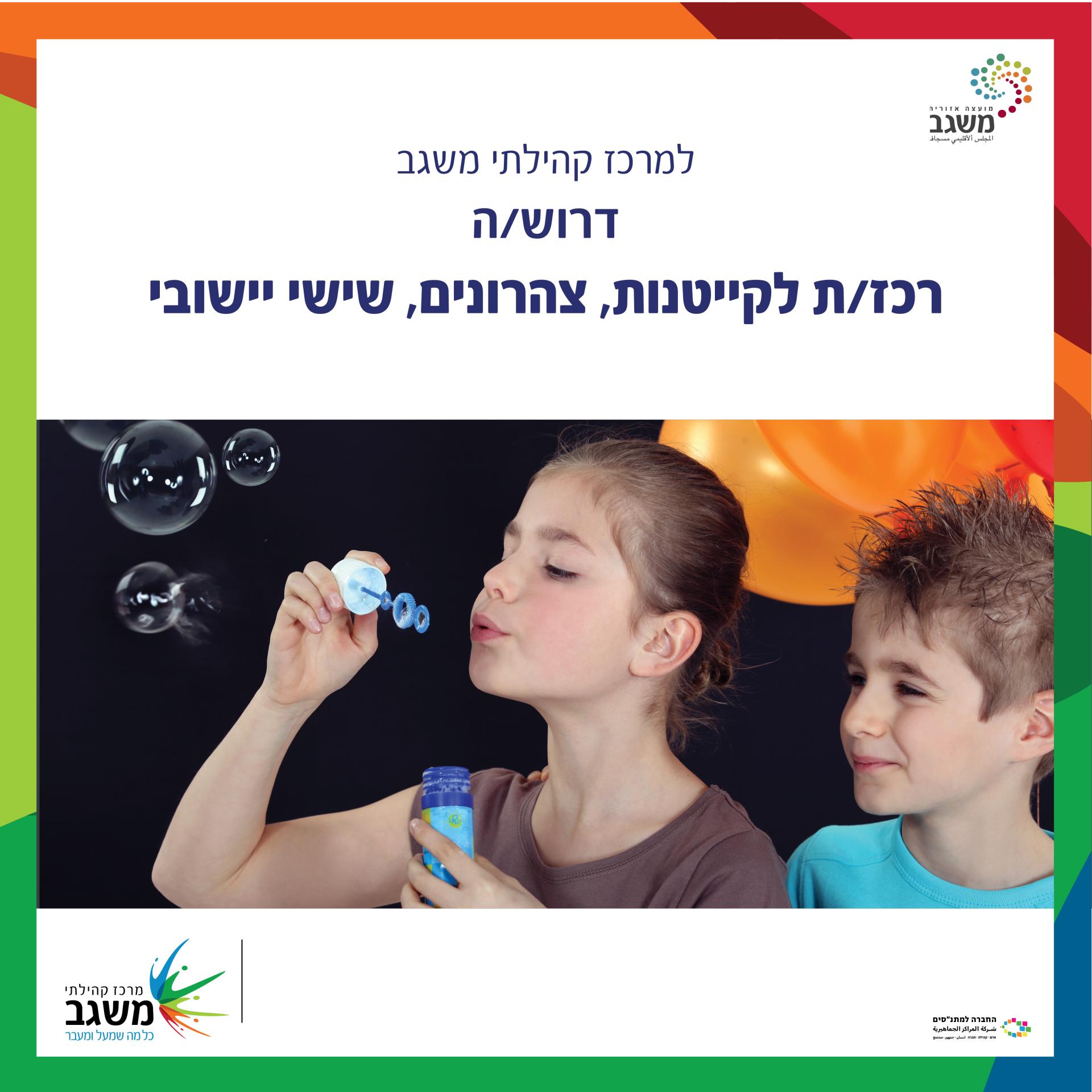 למרכז קהילתי משגב דרוש/ה: רכז/ת לקייטנות, צהרונים, שישי יישובי